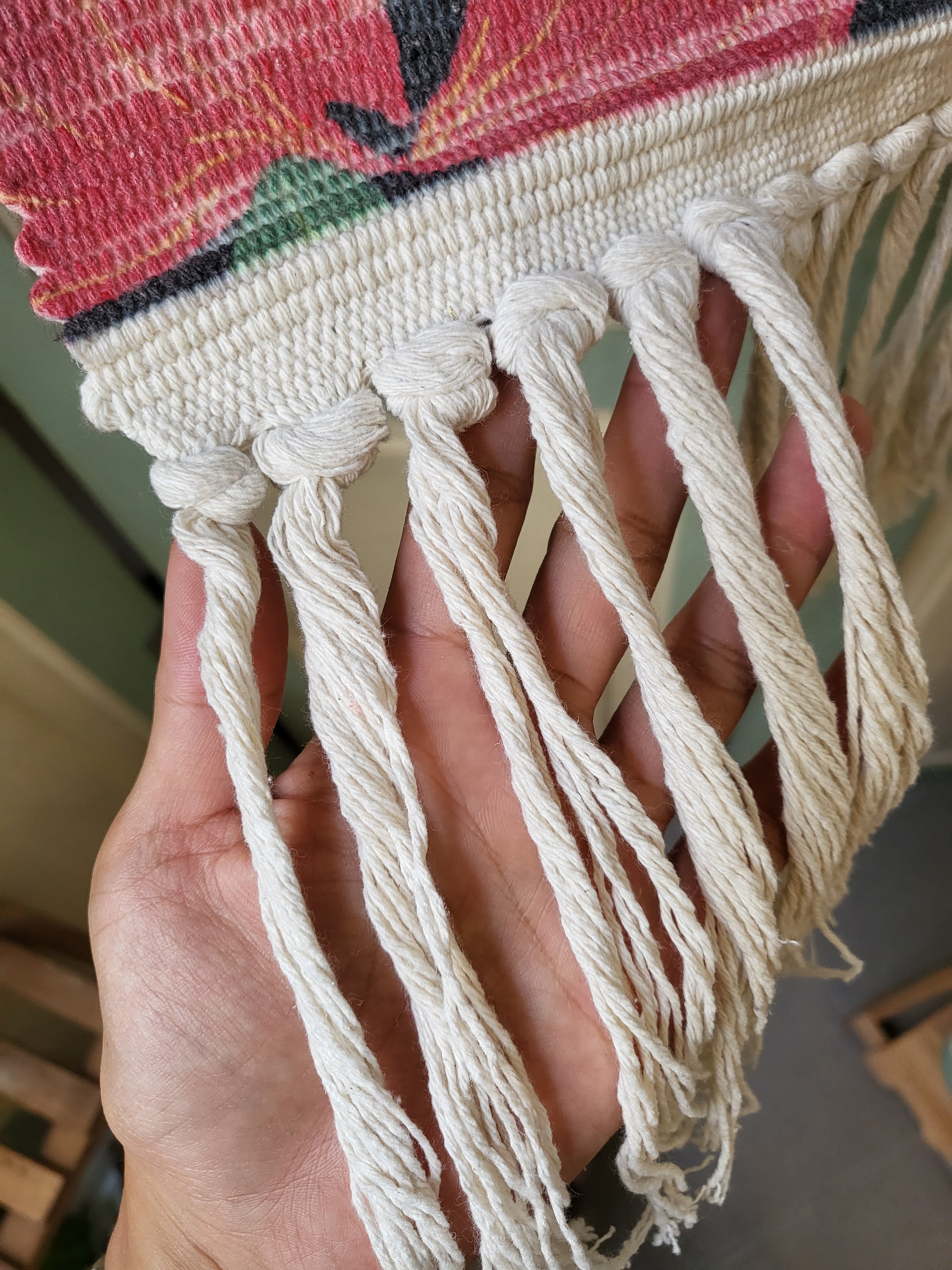 Wove by hand individually, with a wood hanging stick and beautiful tassels, a little boho vibe with full flavor of southeast Asian style deco.?