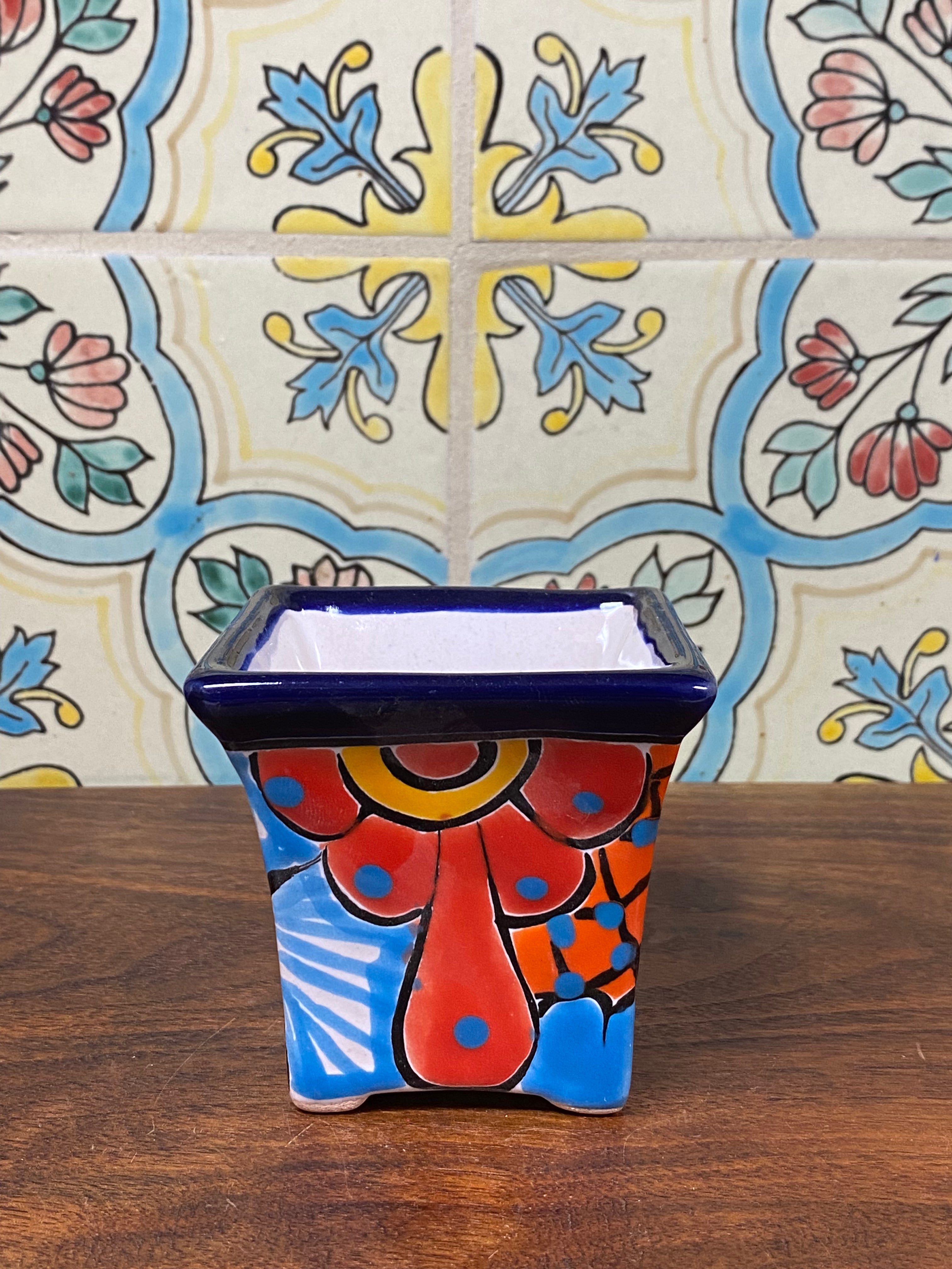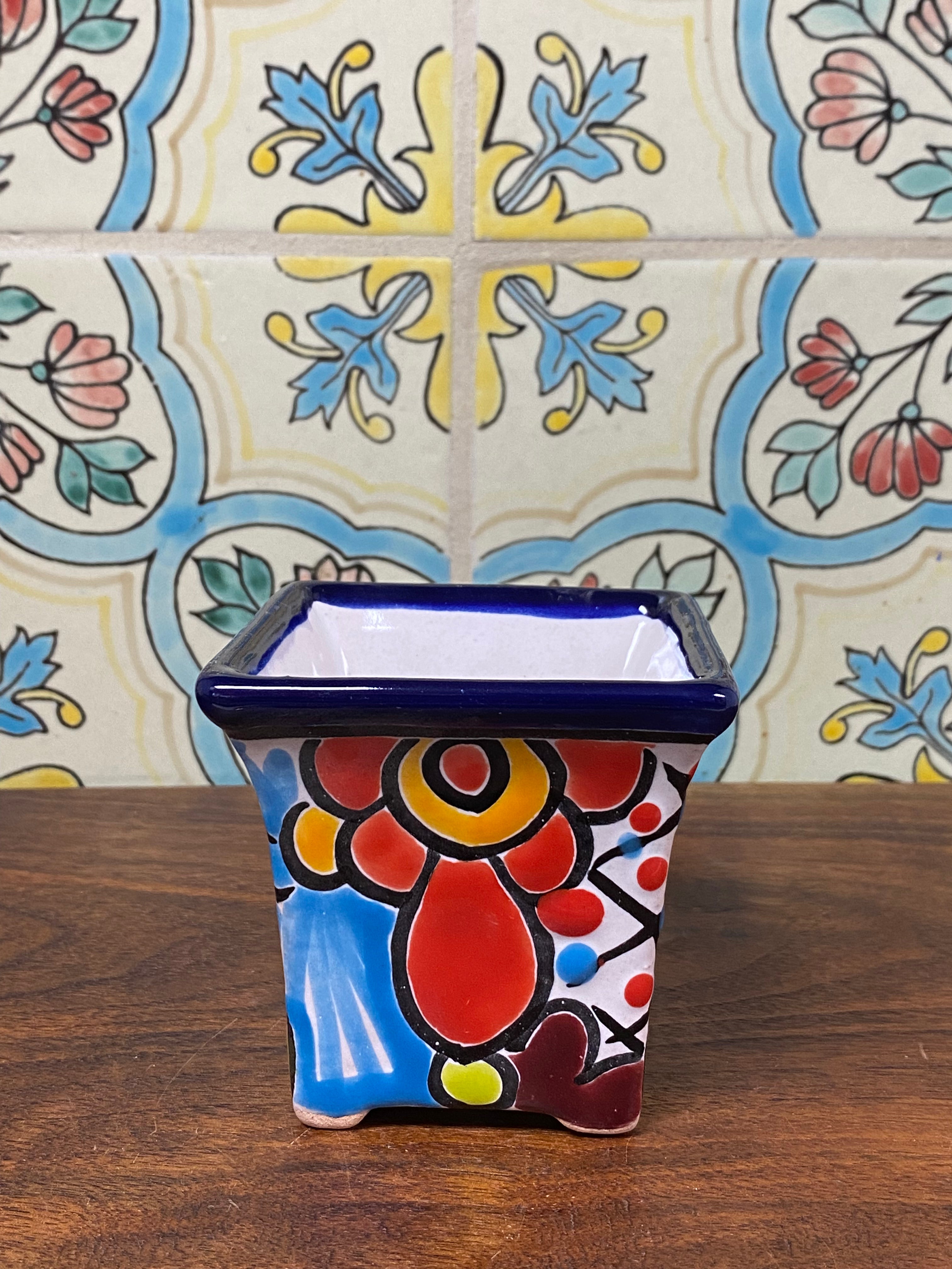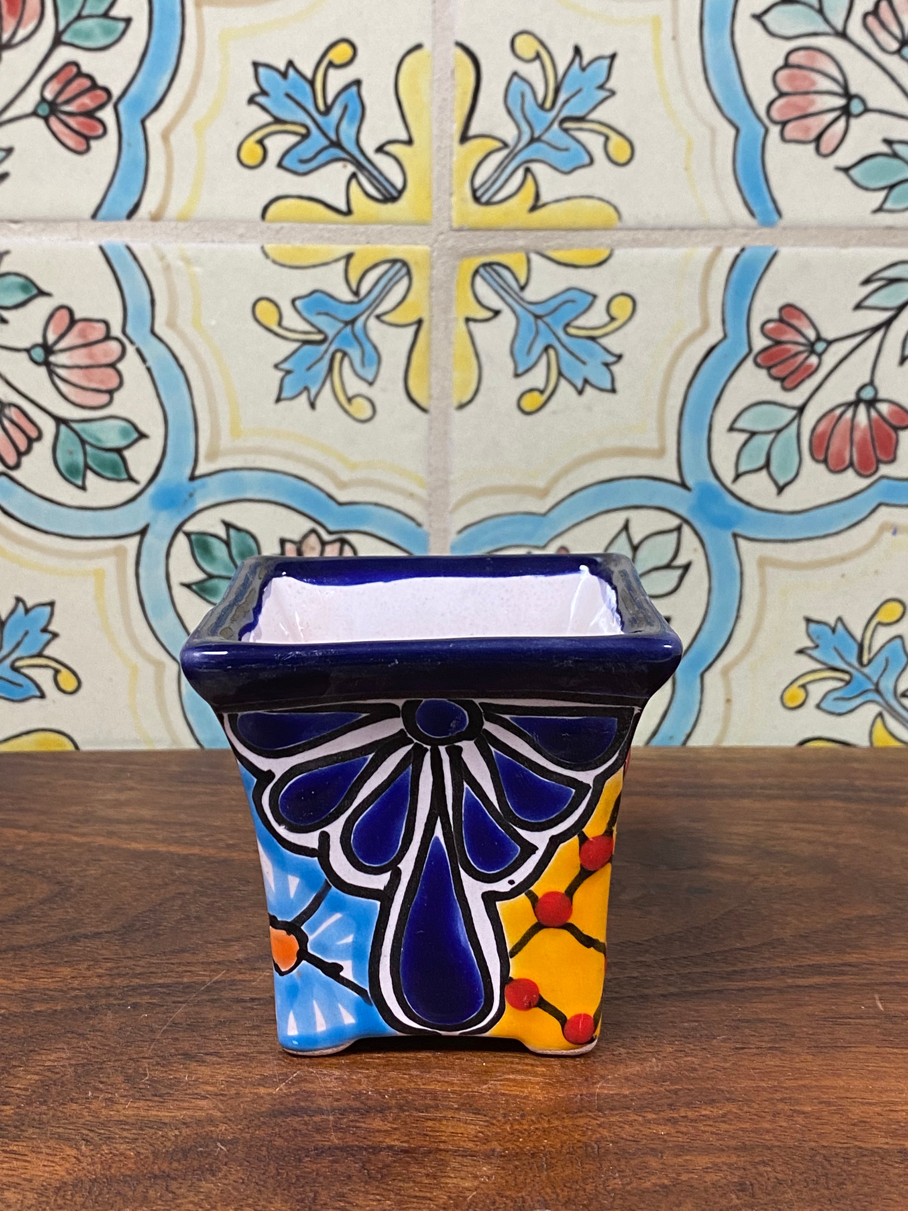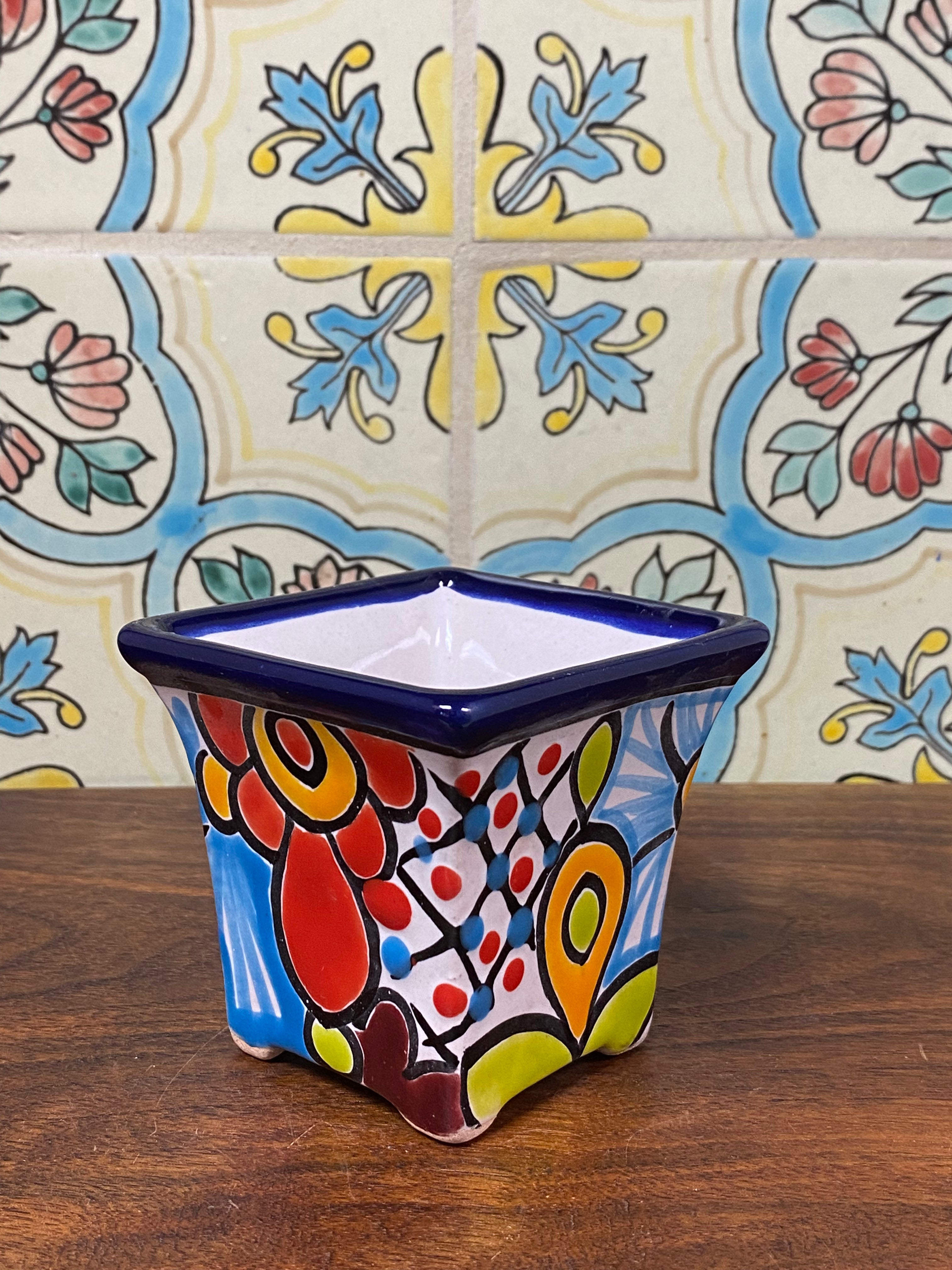 different design options available. Hand painted small Talavera planter with drain hole. Perfect for small succulents