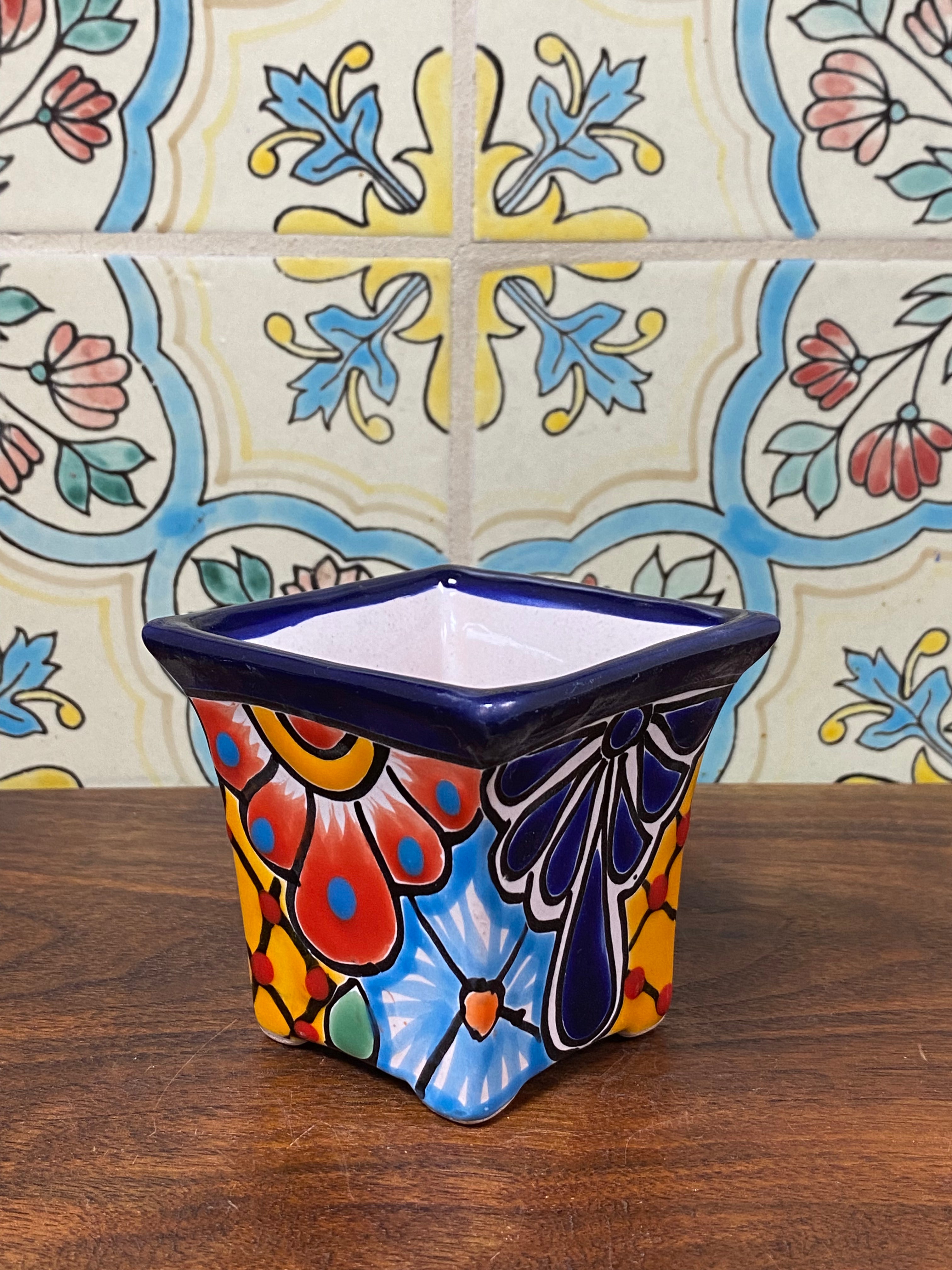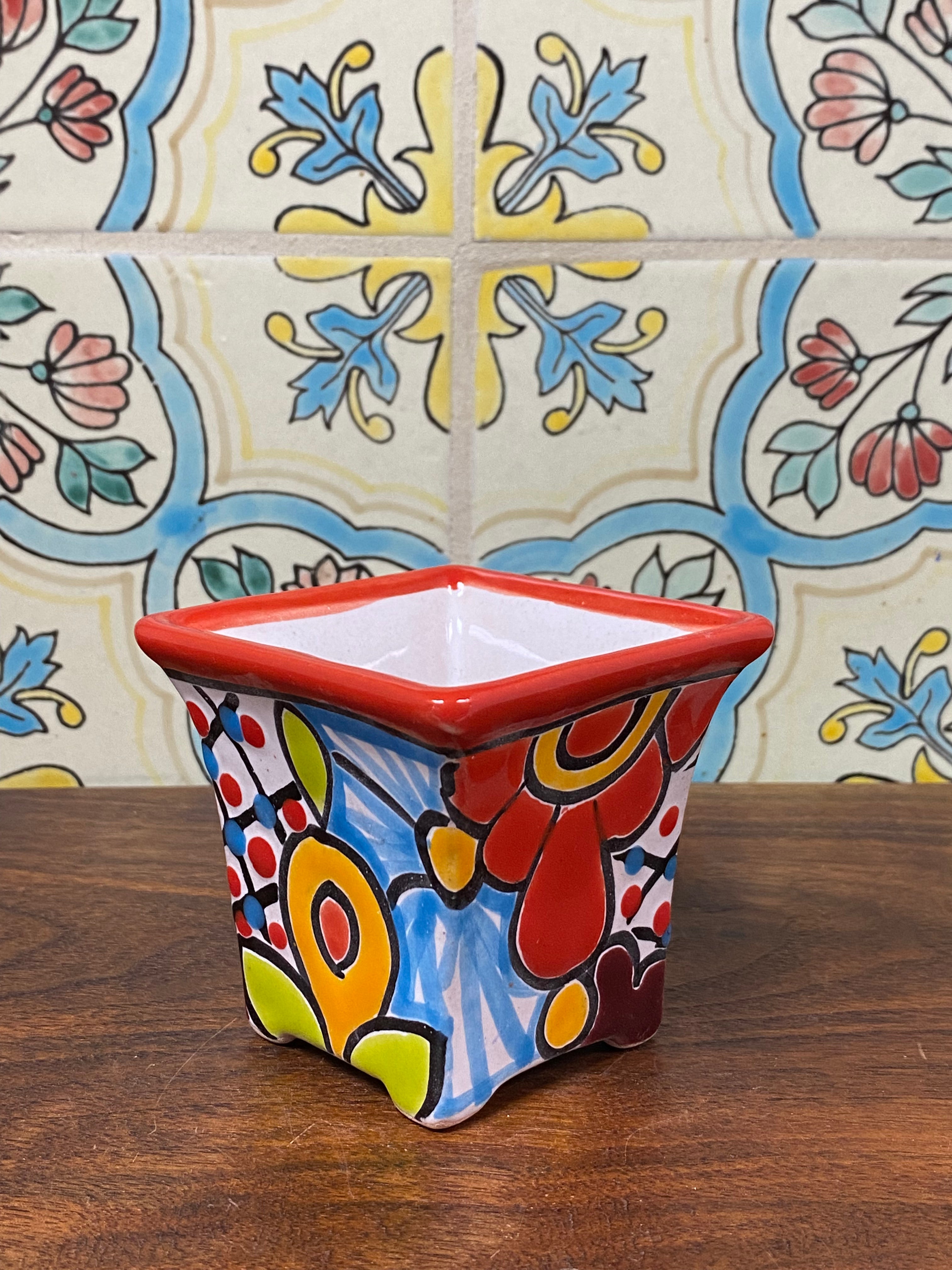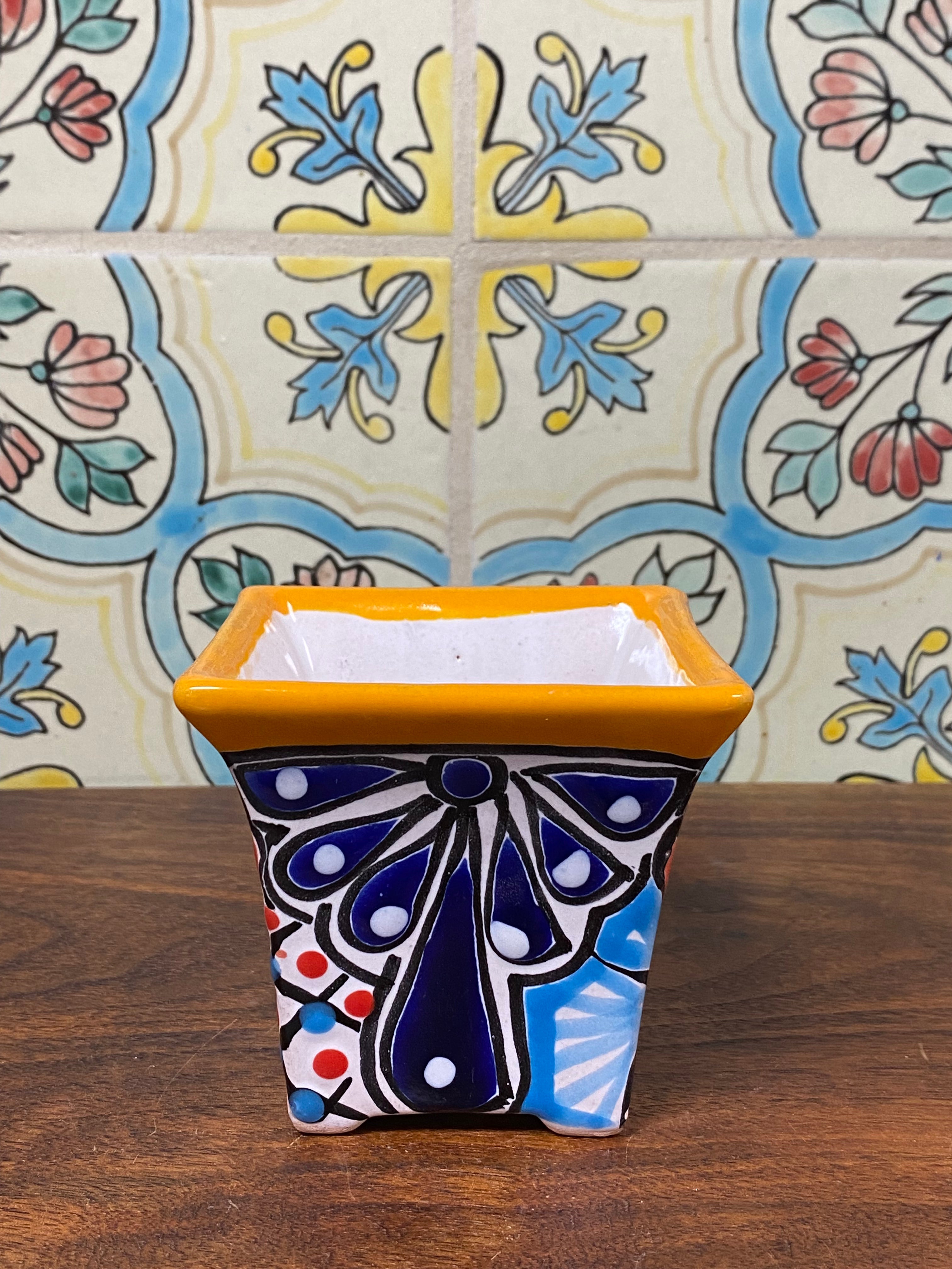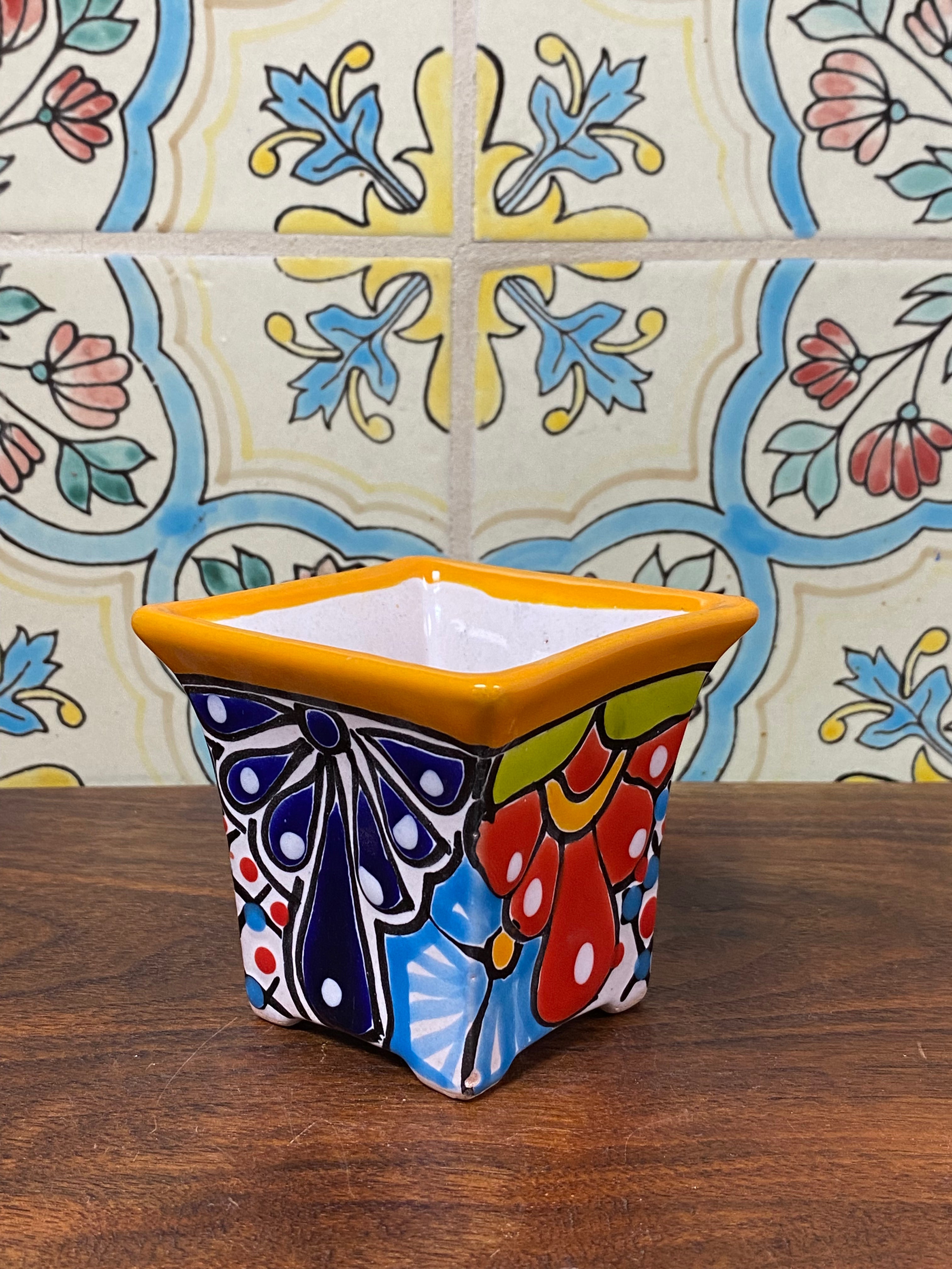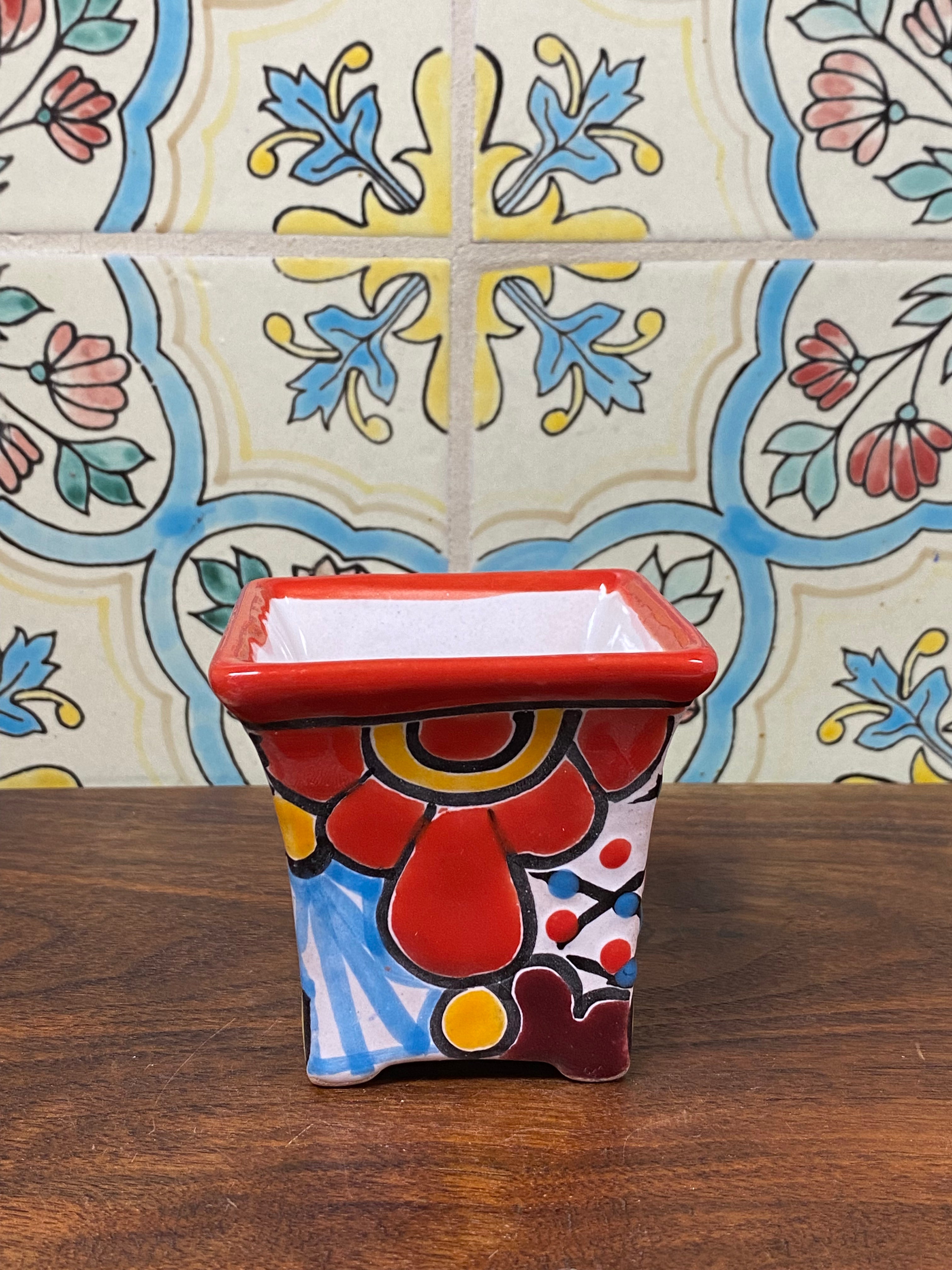 different design options available. Hand painted small Talavera planter with drain hole. Perfect for small succulents
