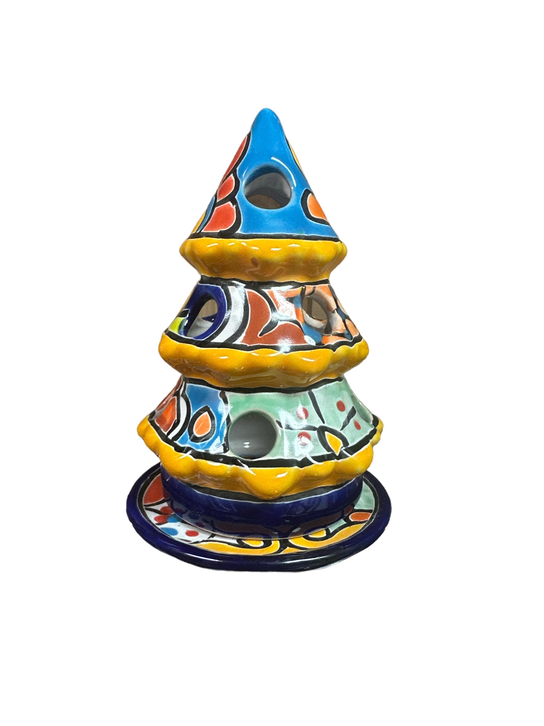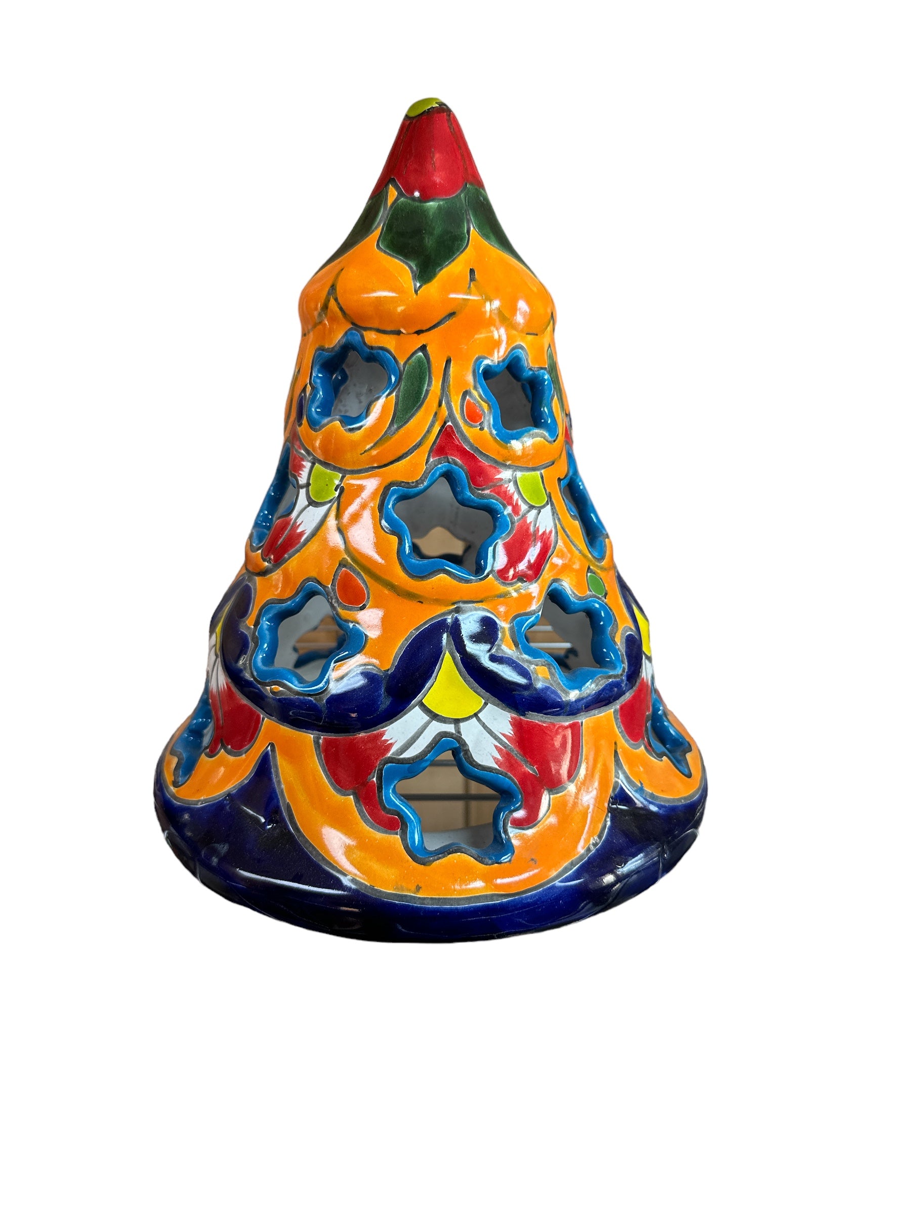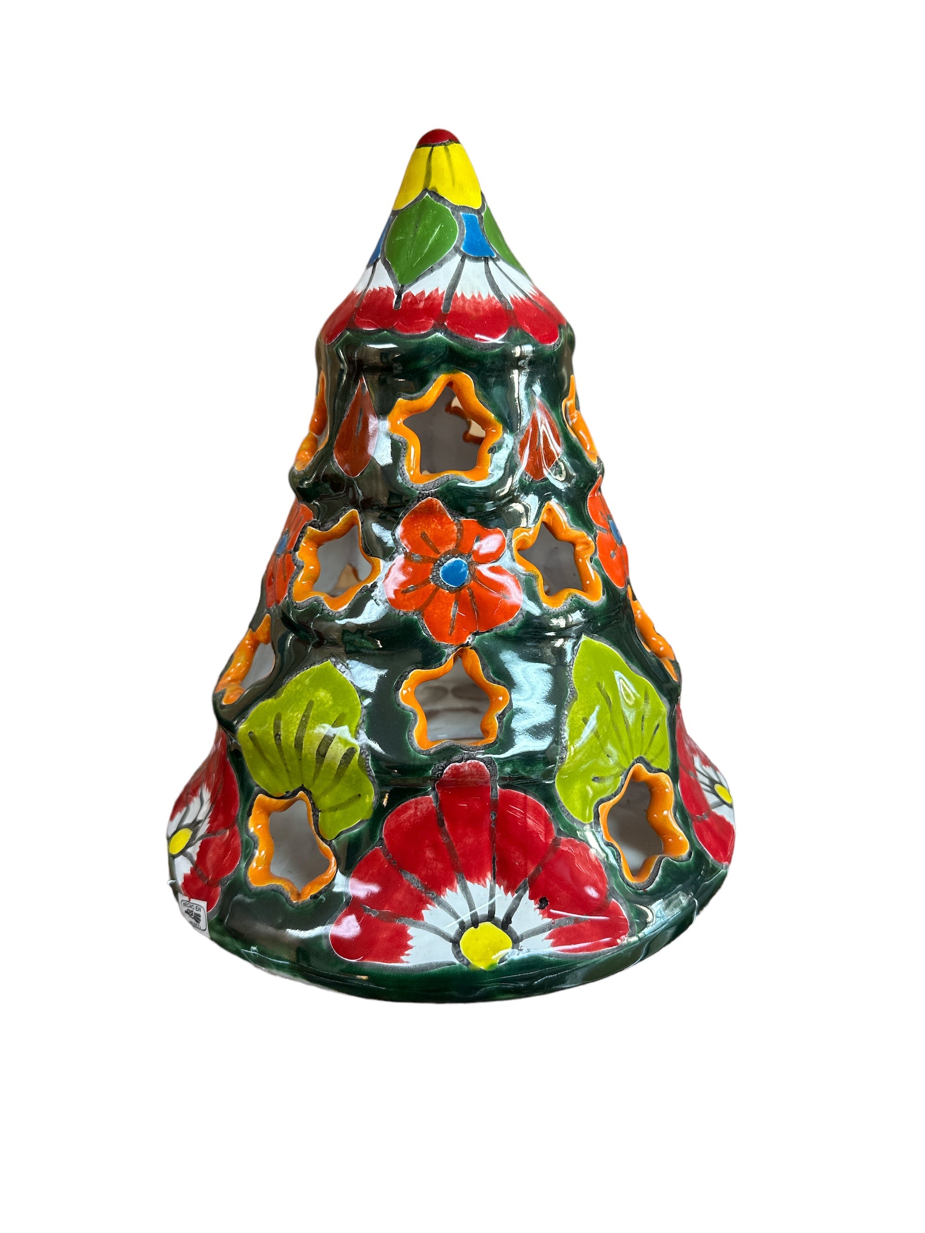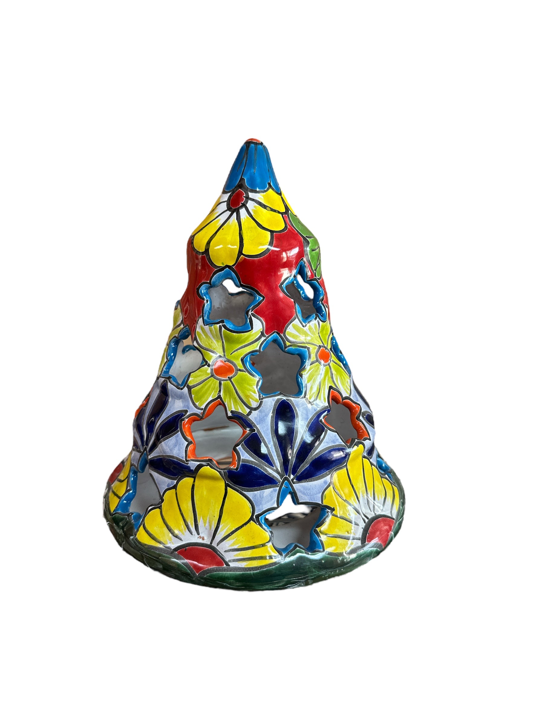 Talavera Xmas tree with cut out stars and bottom, perfect for candles or led lighting
