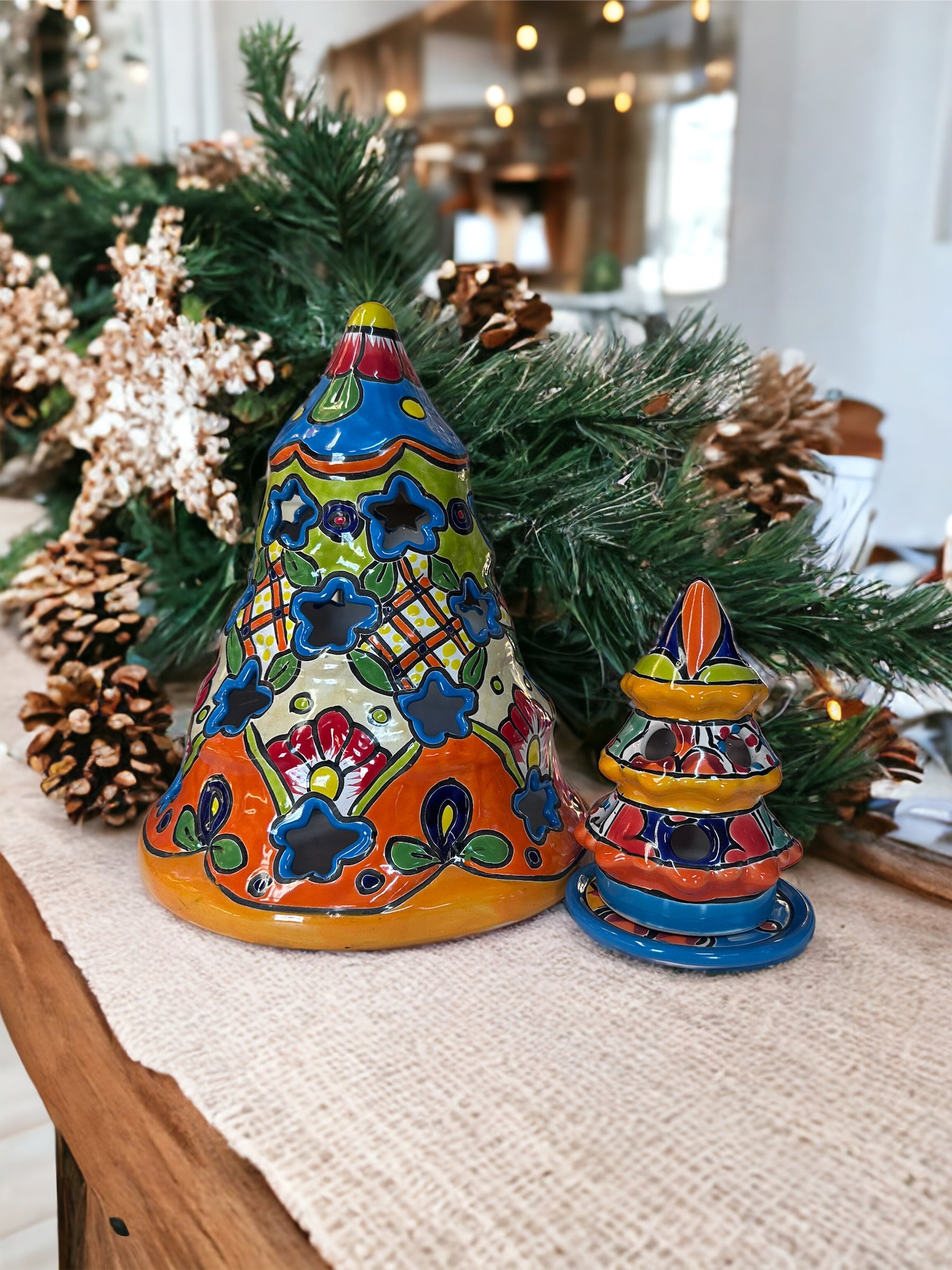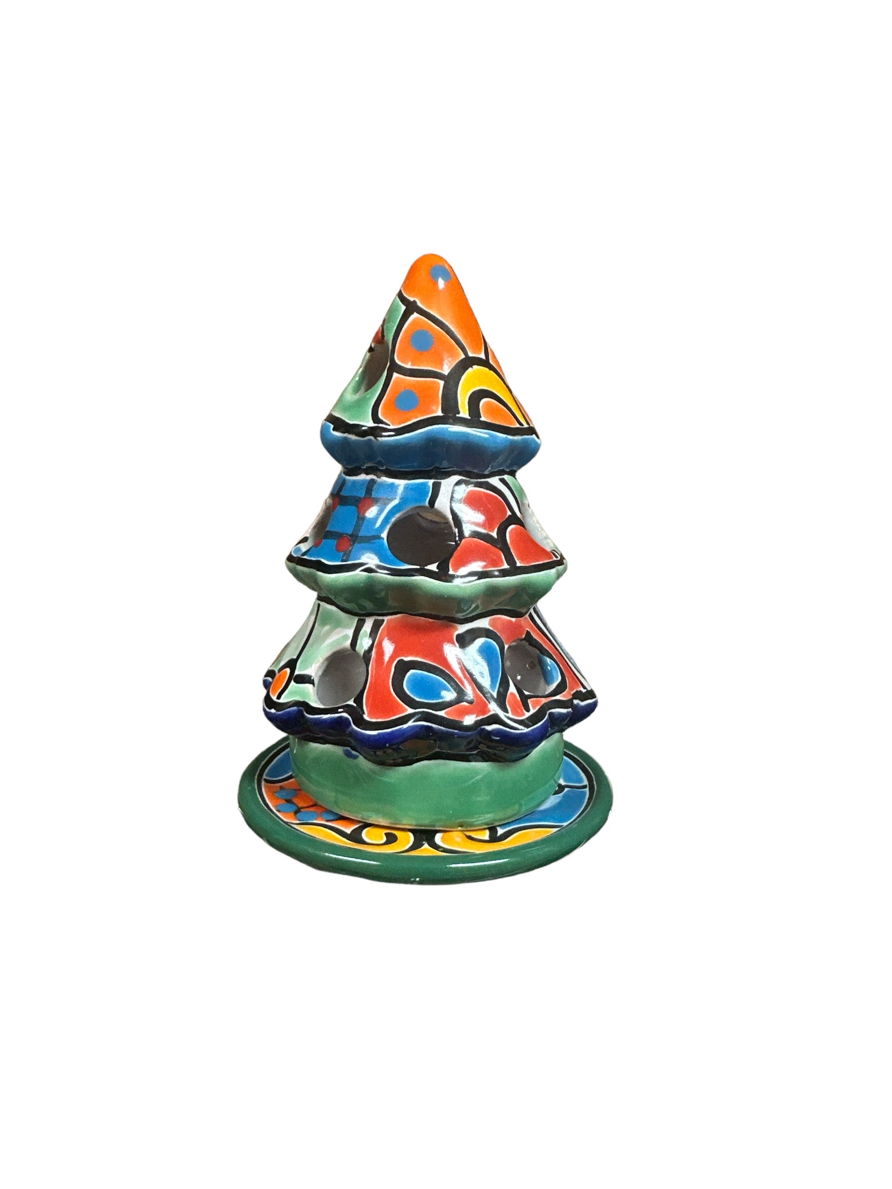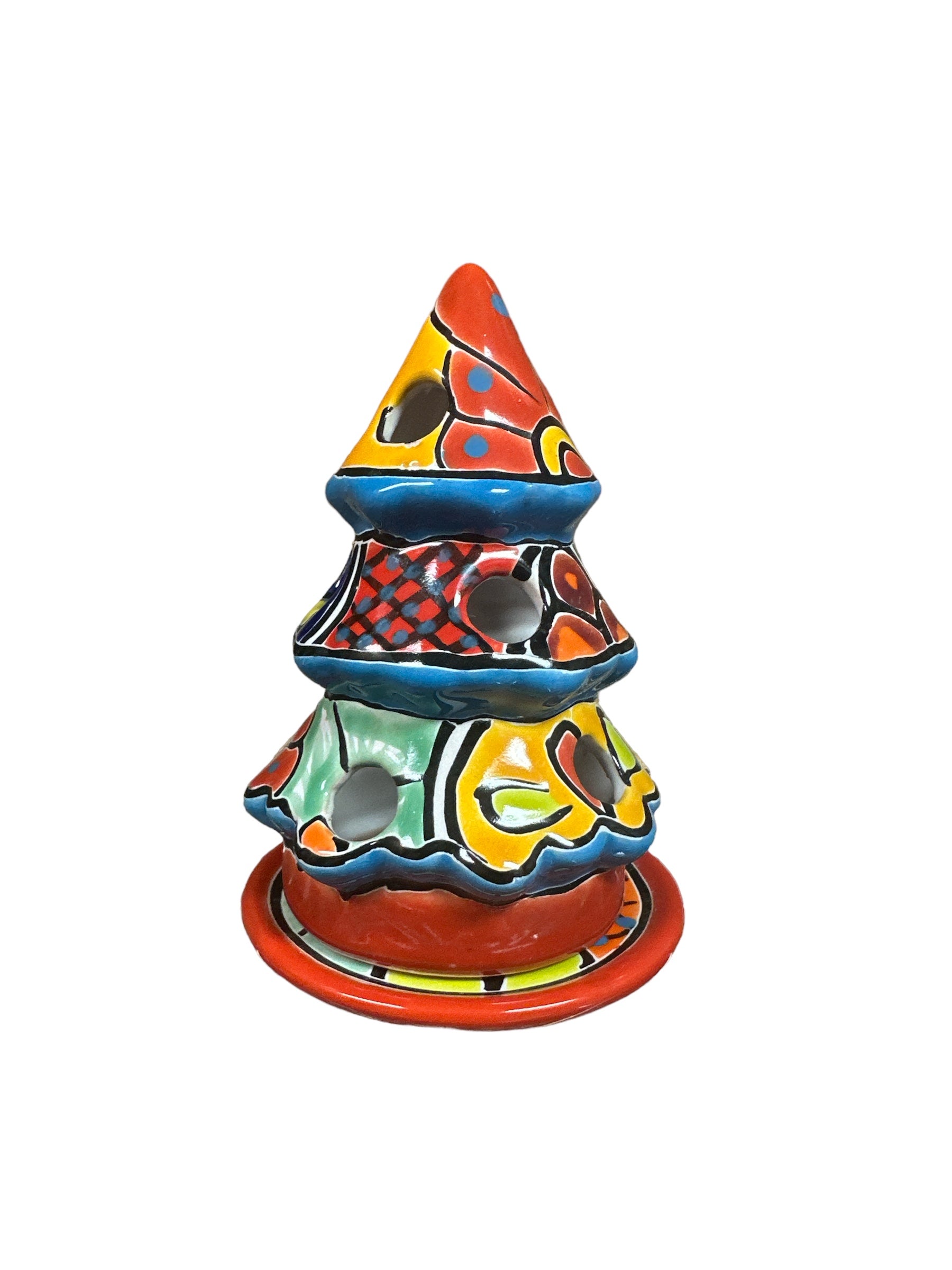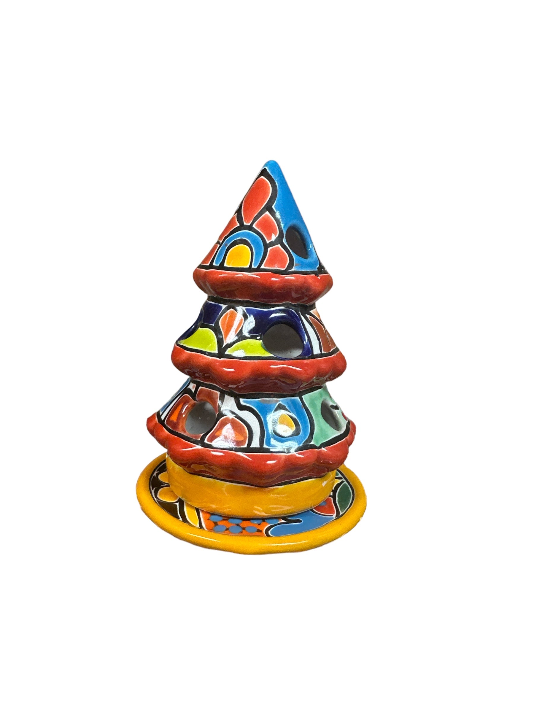 Talavera Xmas tree with cut out stars and bottom, perfect for candles or led lighting