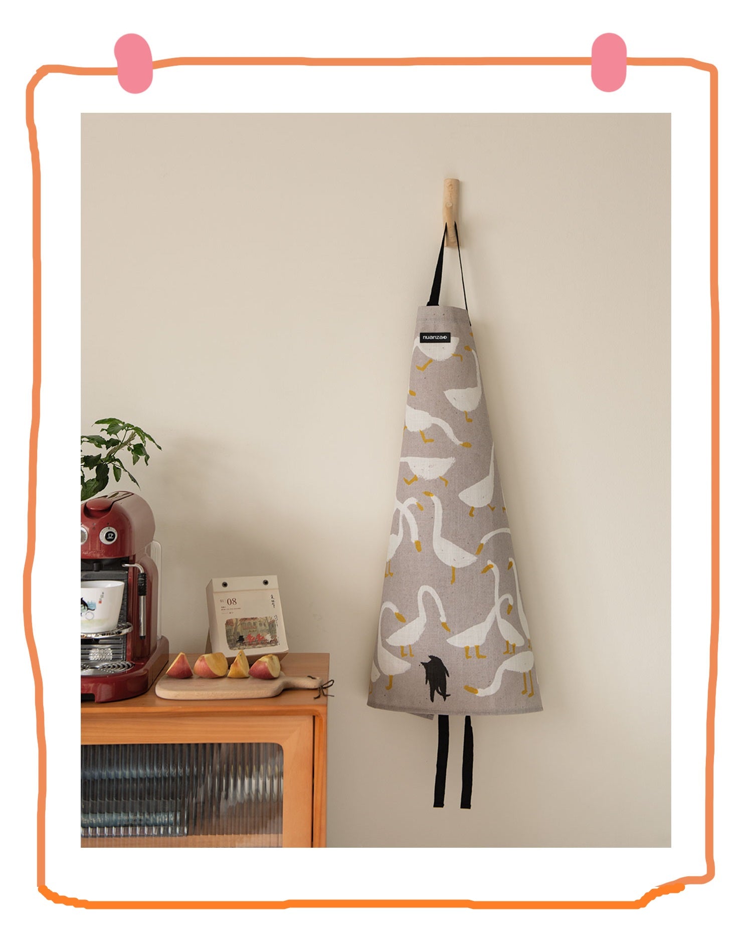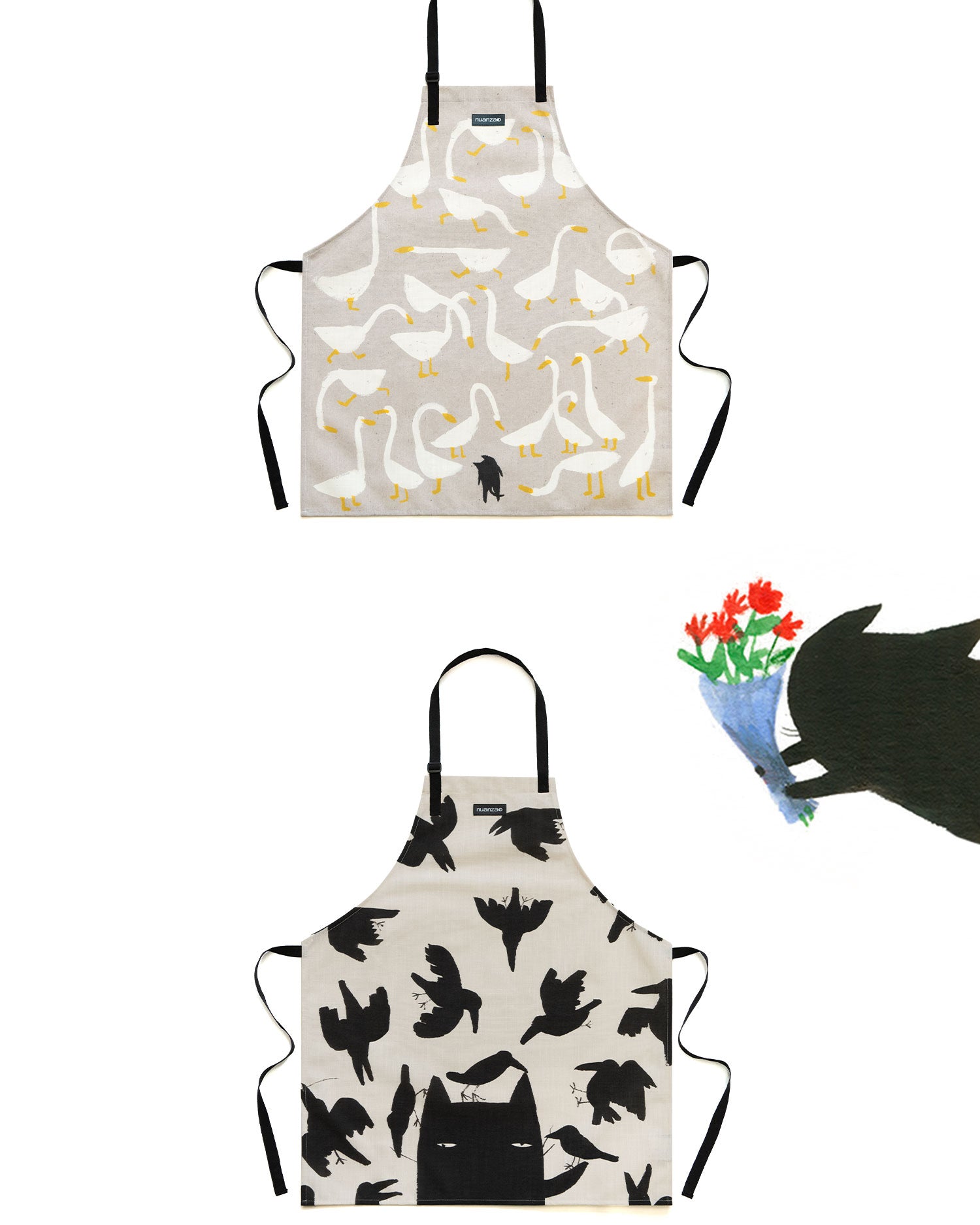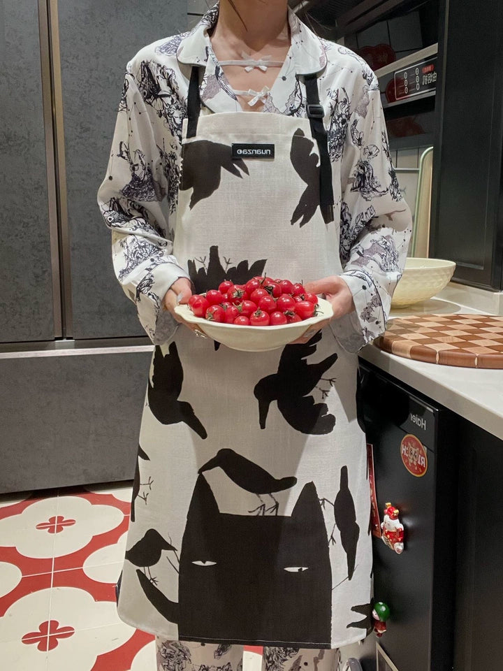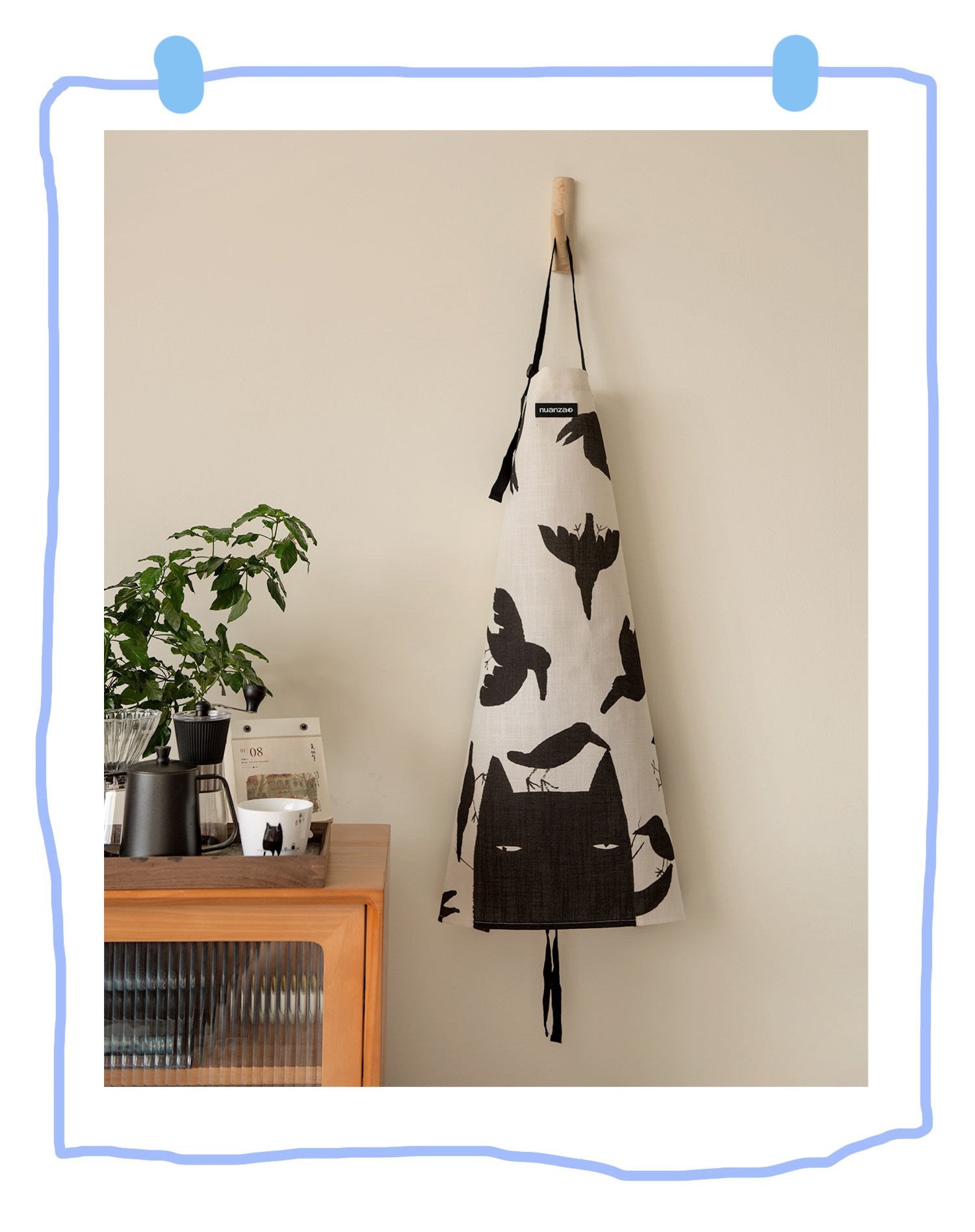 Cotton Linen apron with illustration of the Black Cat's happy life by Zhang Lelu