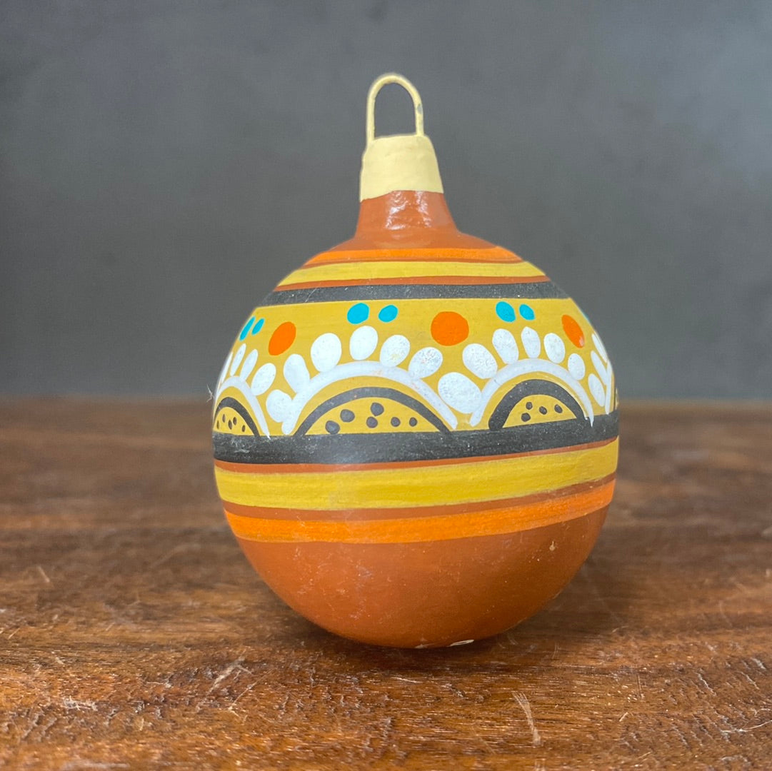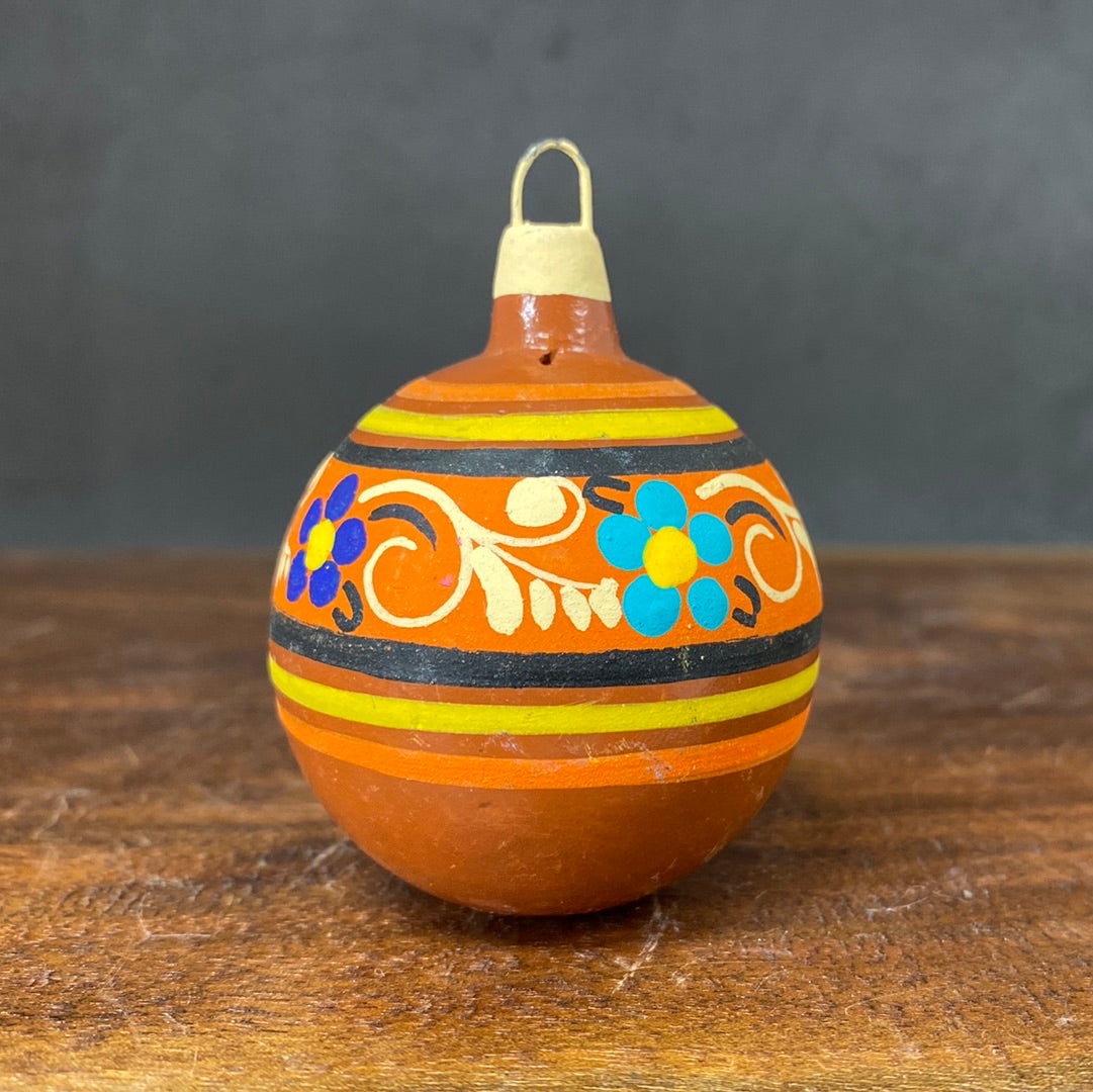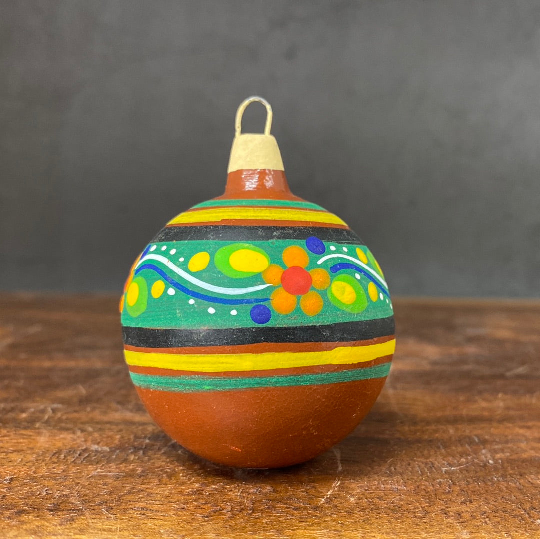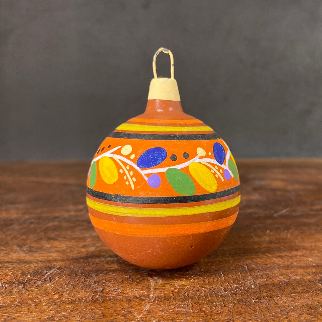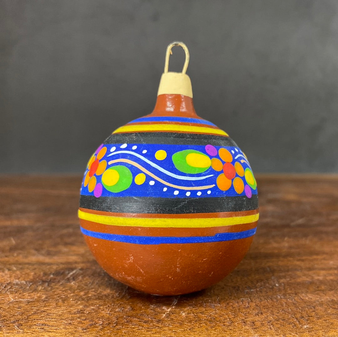 Hand painted clay sphere ornament.