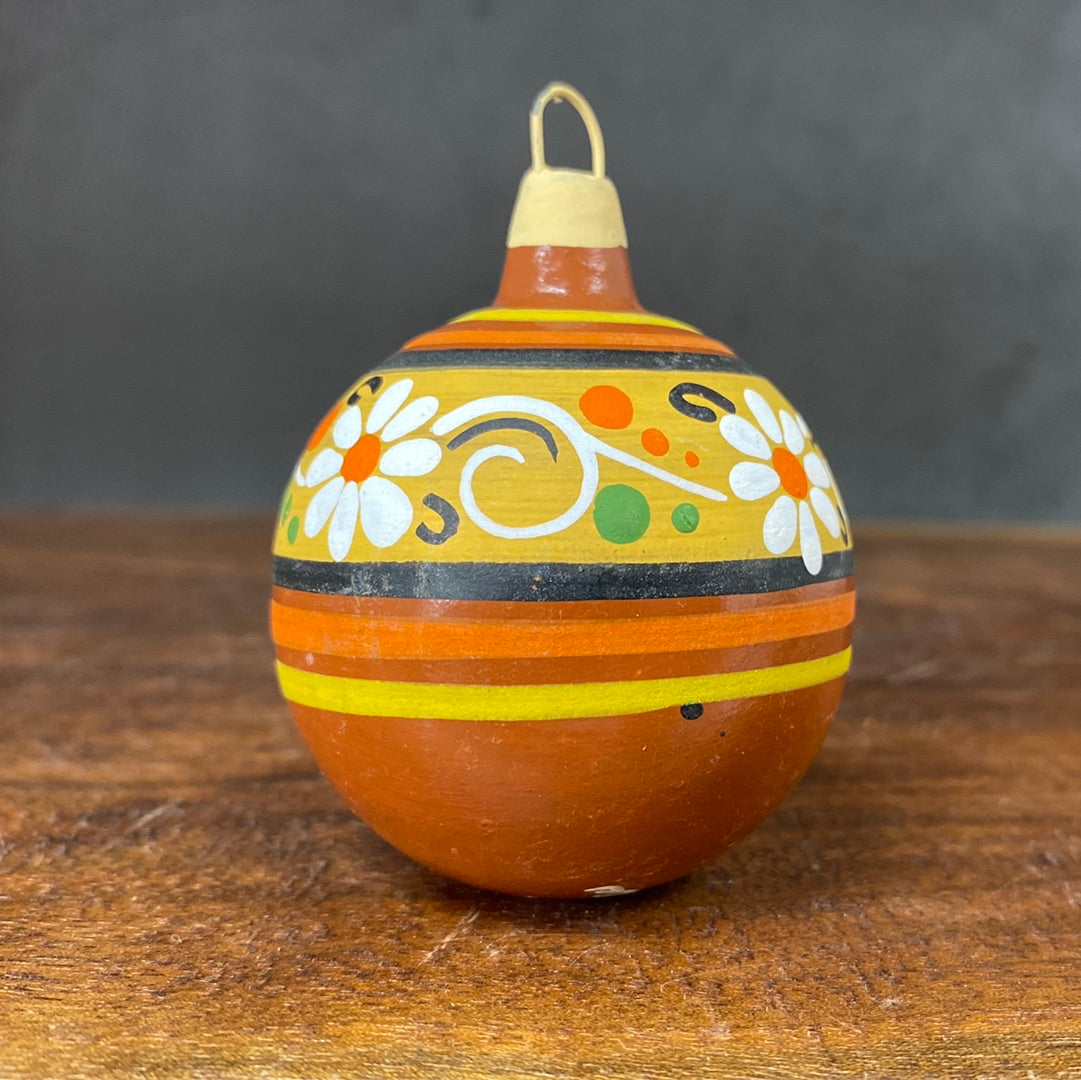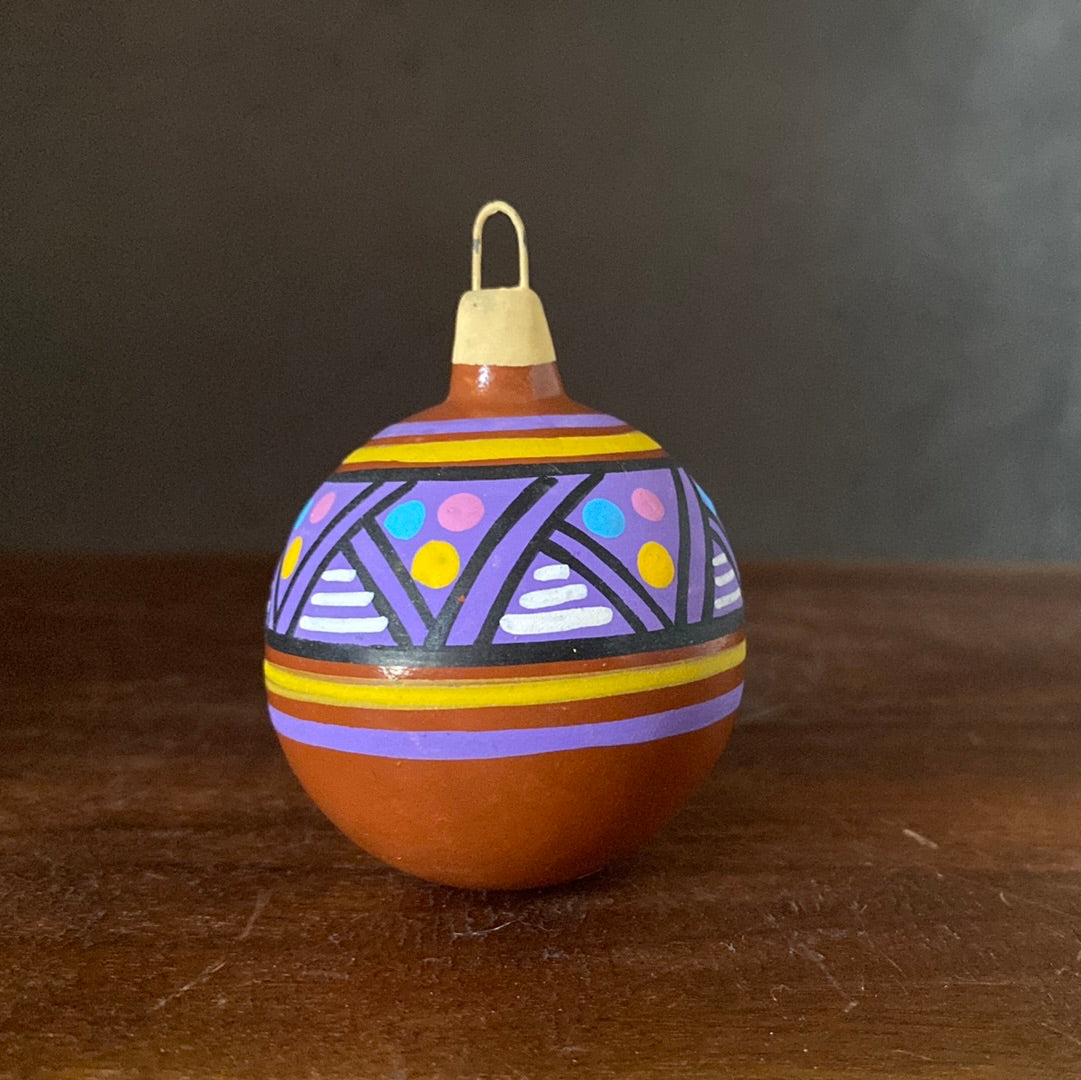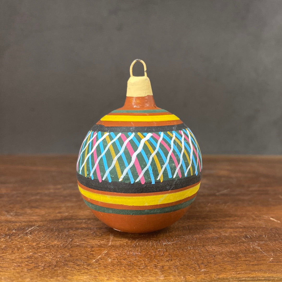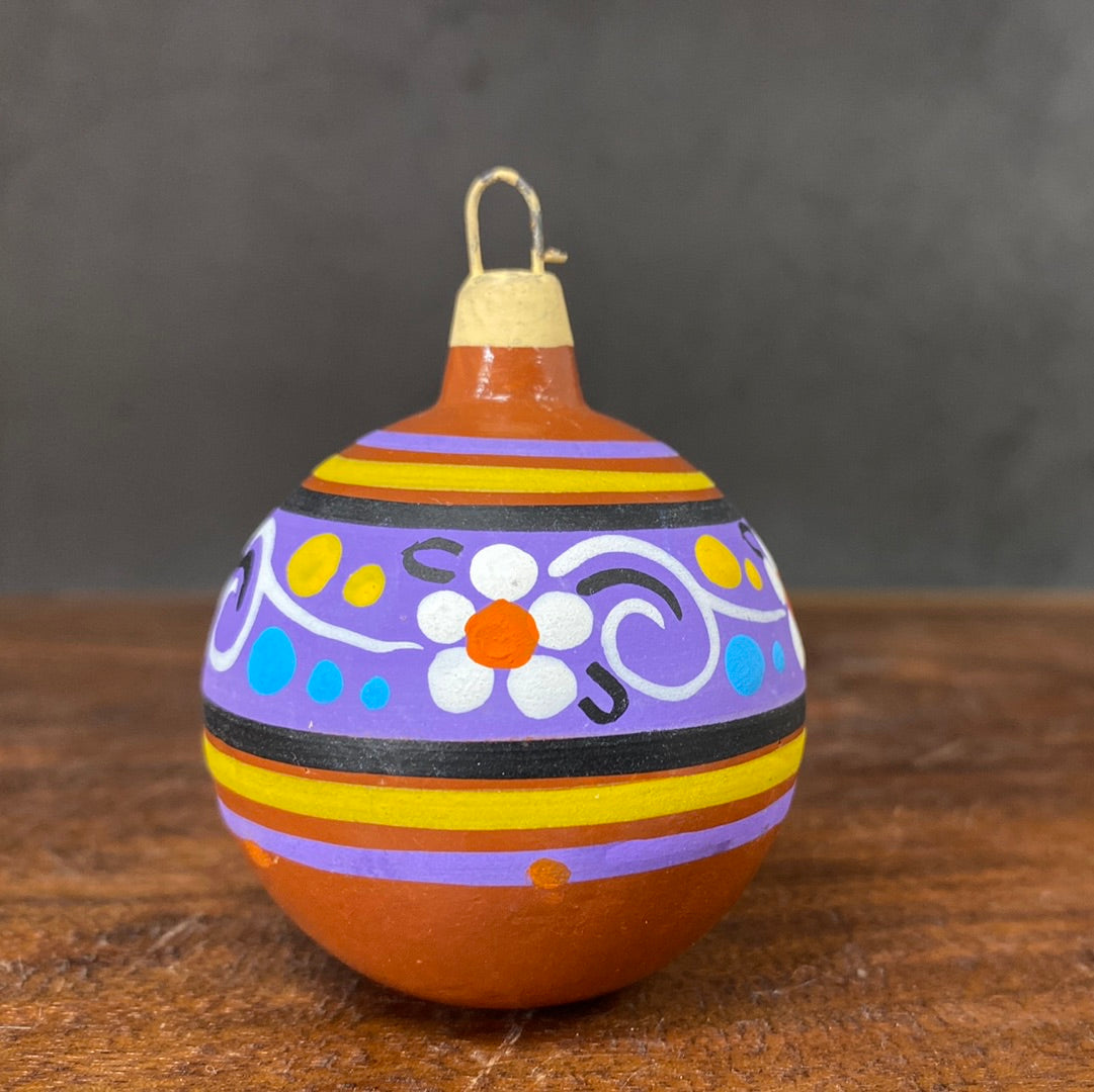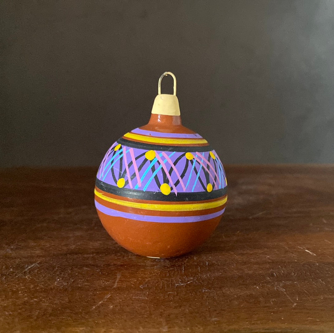 Hand painted clay sphere ornament.