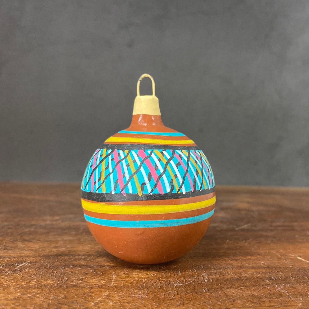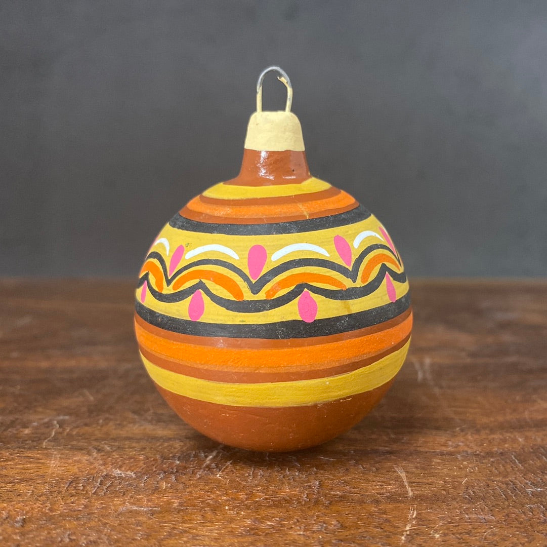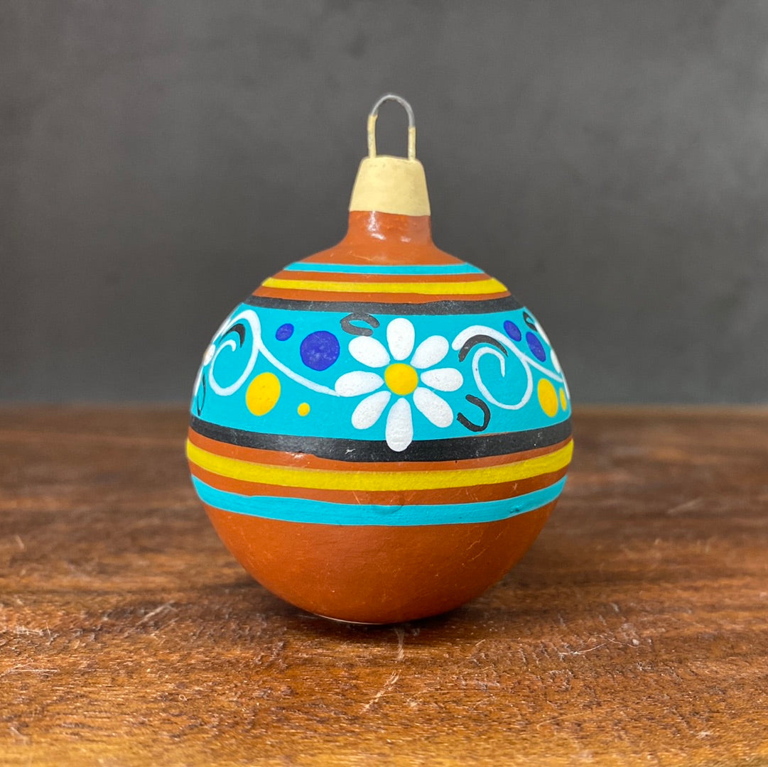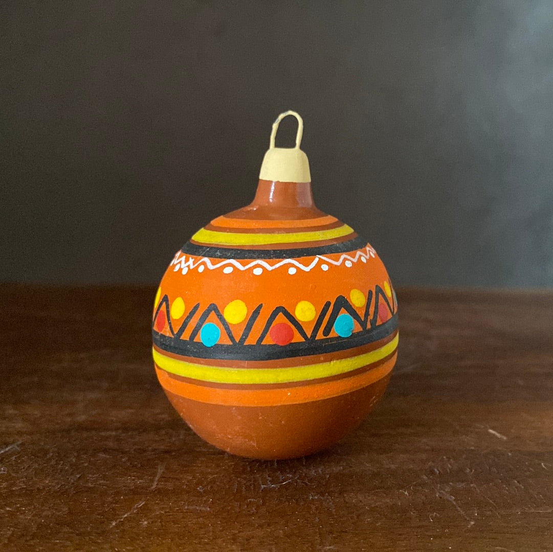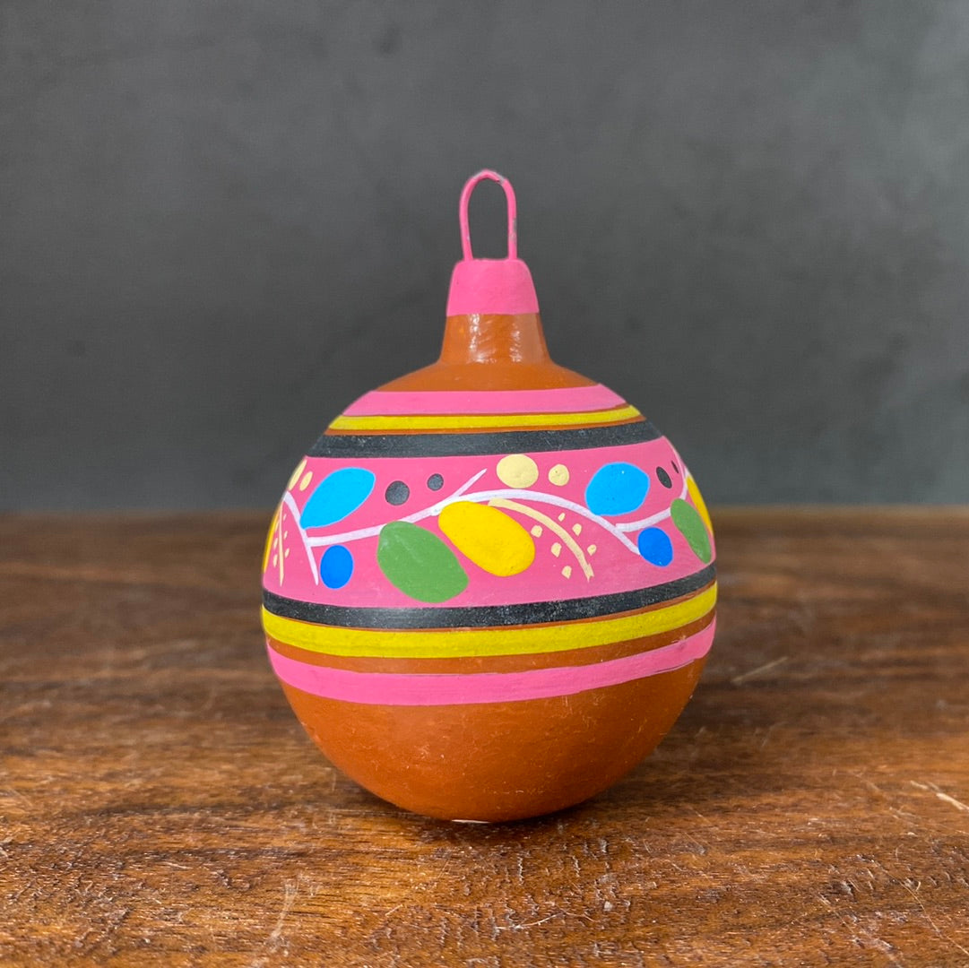 Hand painted clay sphere ornament.